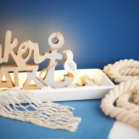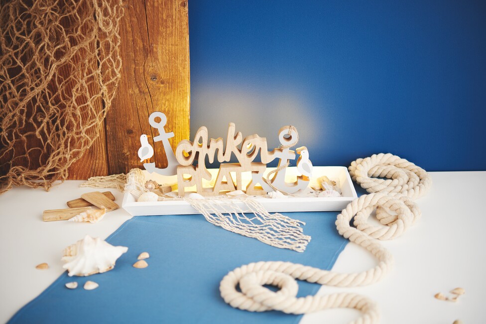 Mit nur wenig Aufwand kannst du in kurzer Zeit eine maritime Dekoration mit Ankern, Schriftzug und indirekter Beleuchtung fertigen – ein stilvoller Hingucker für dein Zuhause oder als Geschenk.