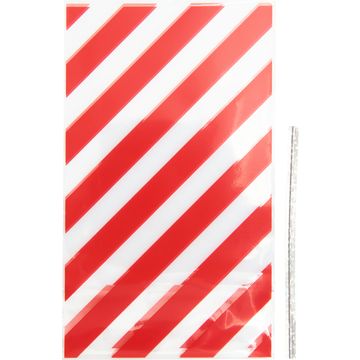 Bodenfaltenbeutel "Rote Streifen" mit Verschlussband