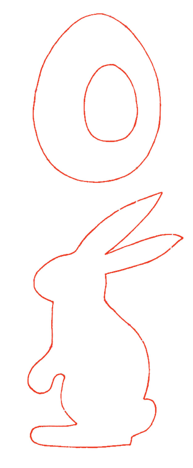 Zunächst die Vorlagen auf Pappe übertragen und ausschneiden. Die Modelliermasse wird zwischen zwei Lagen Dauerbackfolie ca. 5 mm dick ausgerollt. Die Pappschablonen aufkleben, die Konturen zunächst leicht mit einem Skalpell nachziehen anschließend genau auf der Kontur ausschneiden. Mit einer Vorstechnadel werden nun Löcher für die Drahtaufhängungen in die modellierten Formen gestocken. Beide Seiden der Motive mit etwas Wasser glätten, anschließend die Modelliermasse komplett durchtrocknen lassen.
