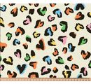Entdecke den Baumwoll-Stoff "Love Leo" - dein neuer Favorit für frühlingshafte Nähprojekte! Mit seinem verspielten Herzmuster in bunten Farben auf einem eleganten ecrufarbenen Hintergrund zieht dieser Motivstoff alle Blicke auf sich.