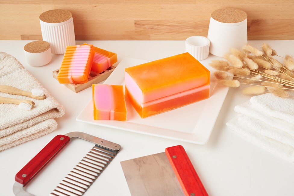 Sobald die Seife vollständig ausgehärtet ist, kannst du sie aus der Form lösen. Mit einem Seifenschneider oder einem scharfen Messer schneidest du die Seife in die von dir gewünschte Dicke. Sei dabei vorsichtig und arbeite präzise, um schöne Seifenstücke zu erhalten!