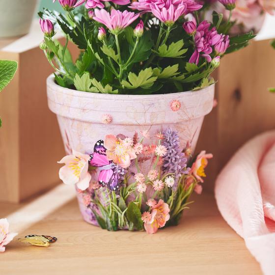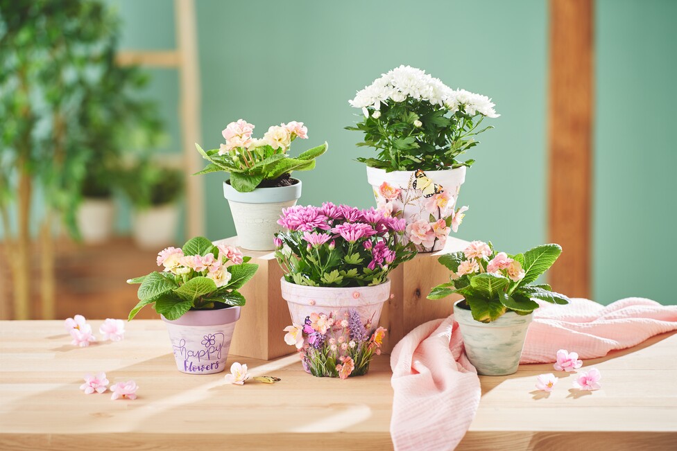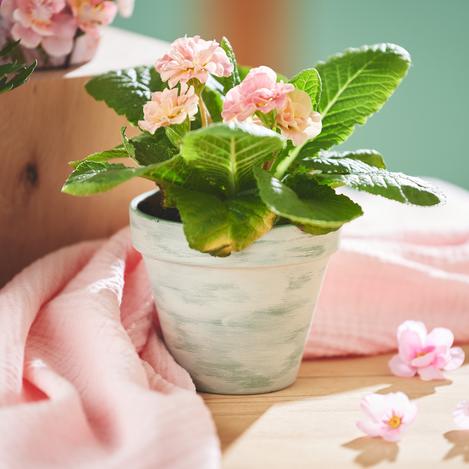 Are you looking for a creative idea to give your flower pots the perfect spring look? The designed flower pots in this idea have been created using three exciting techniques. Find out here how you can use the craquelure technique, the vintage look and napkin technique to create your new spring decoration.