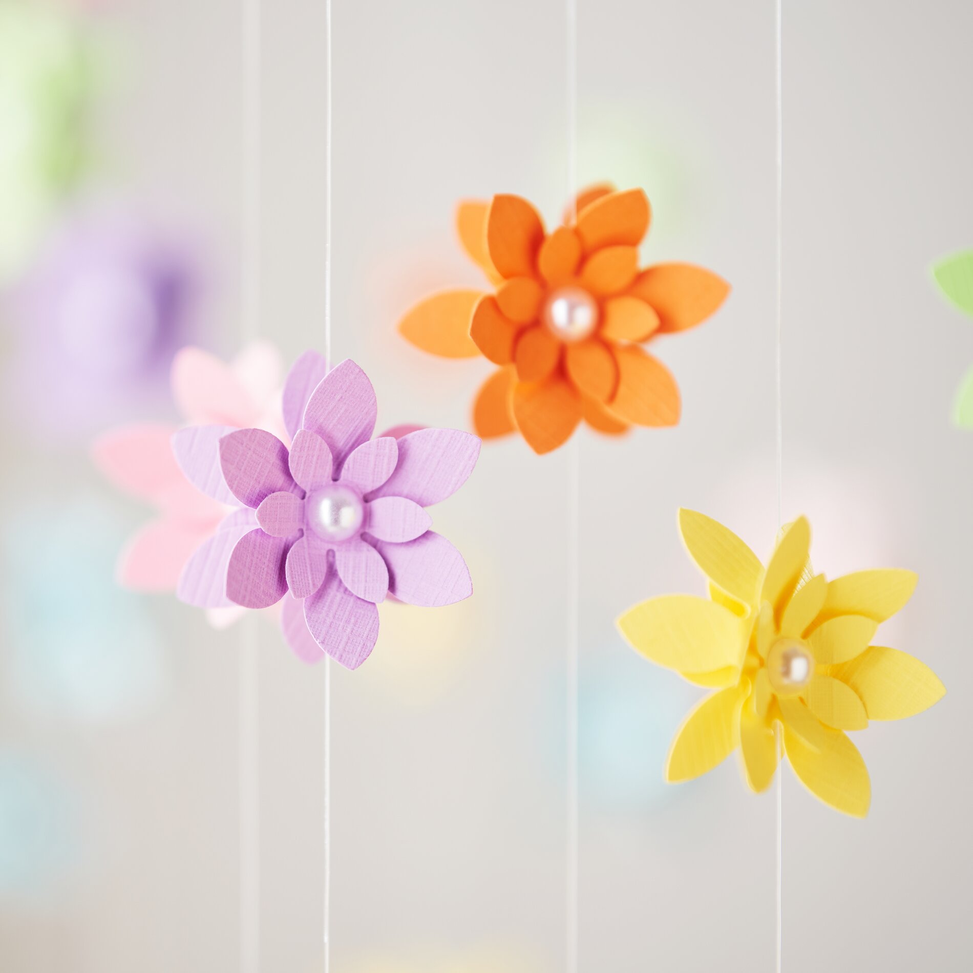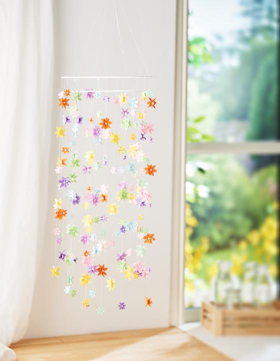Your DIY Flower mobile is now ready to brighten up your home. Whether simple, colorful or playful - you can customize the design with colors, spacing and flower shapes.