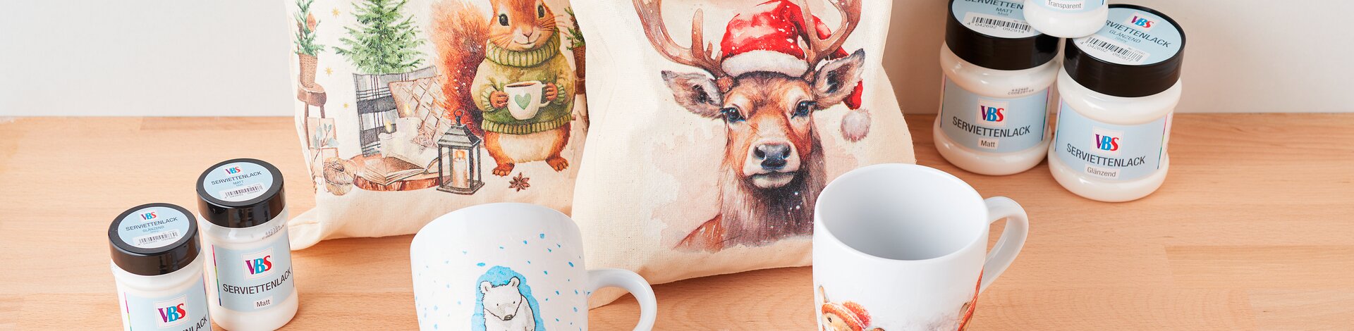 Außergewöhnliche Optiken erfordern besondere Tricks und Kniffe. In unseren vielen VBS Anleitungen zur Serviettentechnik zeigen wir dir, wie du dieses Hobby nicht nur auf klassischem Holz, sondern auch auf Glas, auf Kerzen oder Fliesen anwenden kannst. Die passenden Bastelrohlinge, Scheren und Lacke werden dir in den entsprechenden Anleitungen gleich mit präsentiert. So gelingt das Nachbasteln sicherlich.