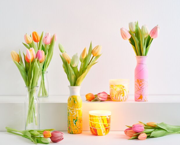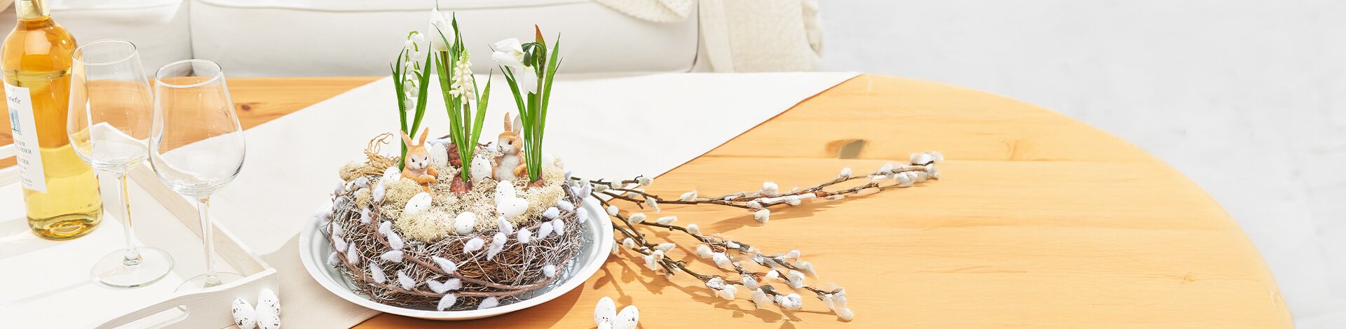 The large assortment of VBS Hobby, which continuously adapts to seasonal conditions and is renewed every year, offers you the opportunity to create your own decorations at any time of the year and for any occasion, such as Christmas or Halloween, and to discover new ideas and products every year. Flowers, wreaths and figurines & scattering pieces are excellent materials for decorations in spring and at Easter. Fresh pastel colours and matching motifs blend in with the blossoming mood at the beginning of the year to give your home a feeling of happiness and joy.