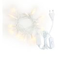 Konstsmide LED mini light chain with on/off switch and 20 warm white LED diodes. The chain of lights has a circuit of 230-240 volts. The color of the light chain is white. With this light chain, the supply line from the plug to the 1. lamp approx. 150 cm and the distance between the lights approx. 15 cm. The total length is approx. 435 cm.