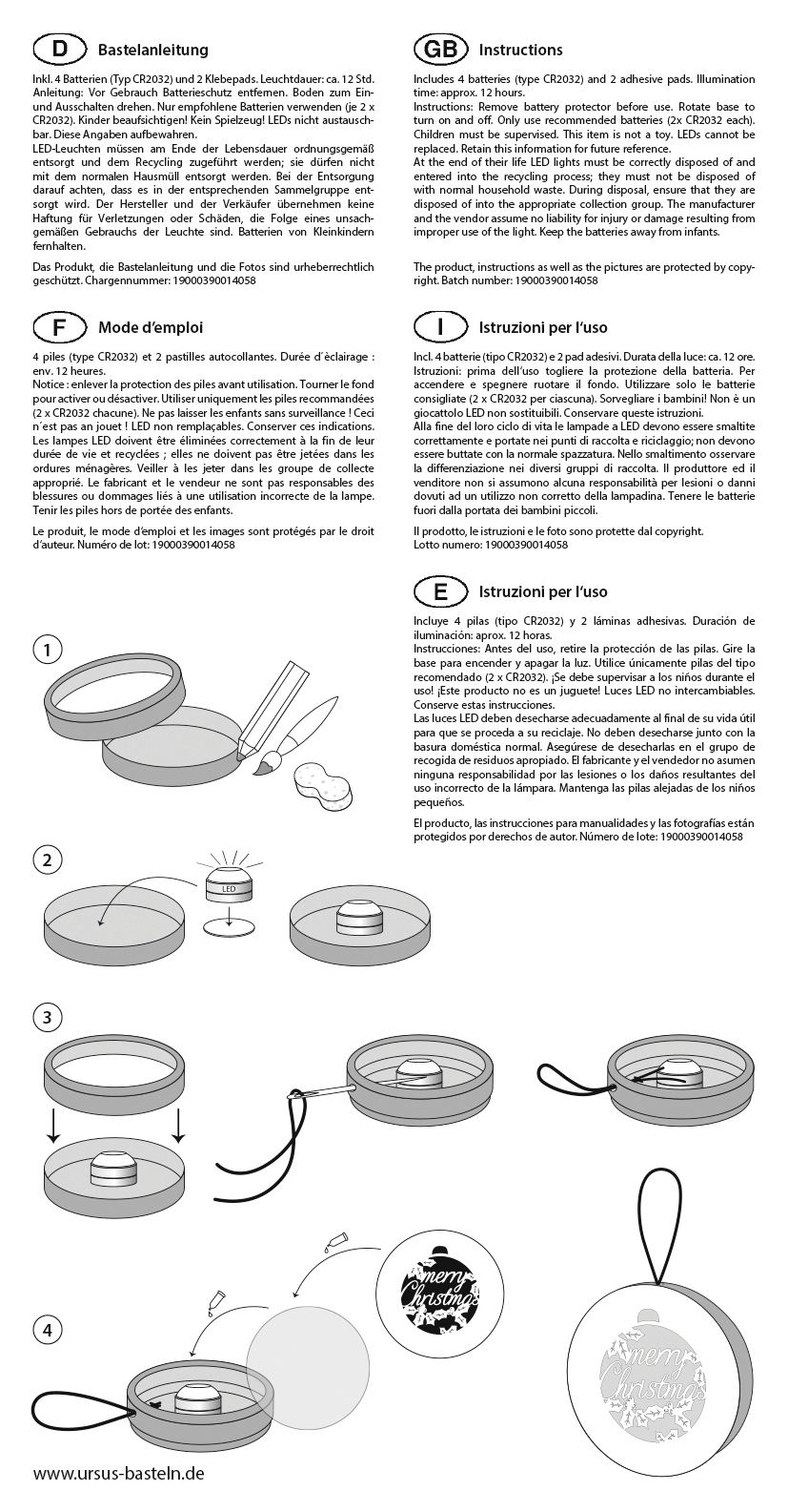 • 2 LEDs lights, incl. 4 batteries and 2 glue pads