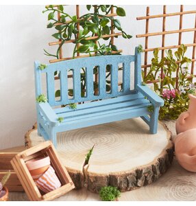 Now it's time to paint the miniature "Lars" bench and the mini-terracotta-pots to your liking. Allow these elements to dry completely before continuing. Then cut off parts of the inflorescence branch and arrange them in the mini-terracotta-pots. Secure everything with hot glue for a stable hold.