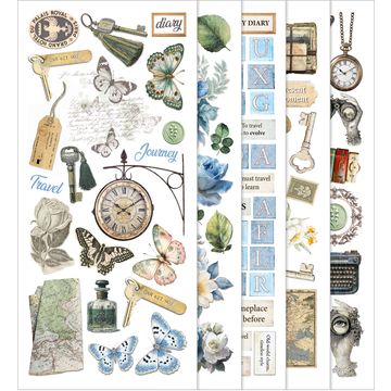 Experience the magic of creativity with the Motif straw silk assortment "Eastern Journey". This set of 8 takes you on a fascinating journey through delicate shades of beige, gray and blue with motifs such as clocks, binoculars, flowers, maps, butterflies, ornaments and much more. The single-sided printed sheets in A5 format are ideal for your craft projects.