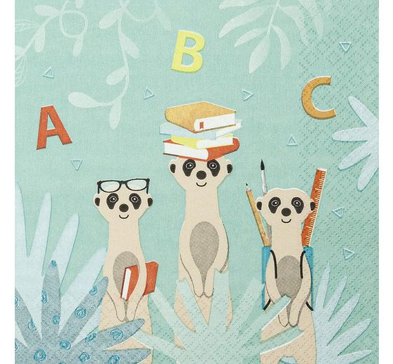 Welcome spring with the cheerful napkin "Have Fun"! With its lovely motif of meerkats carrying books and pens, it exudes a playful and creative atmosphere. The napkin technique allows you to transfer the motif to wood, fabric, ceramic or glass. Transform furniture or drawers into unique works of art. Get your inspiration now and start designing!