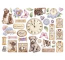 The versatile designs, such as dogs, cats, tags, flowers, butterflies, stamps and more, are perfectly coordinated and enrich your creative ideas. Use them to embellish boxes or paper bags and give your gifts a very personal touch.