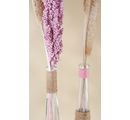 Because of the slim shape of the bottles, they are ideal as a flower vase for stem flowers. Filled with liqueur, soap or simply with decoration-Sand and a flower, they quickly become a great gift idea or a souvenir. With ribbonEmbellishments and beads the glass bottles become a pretty eye-catcher. Lettering or painting with glass paints is also possible. In this way, very individual gifts are created, which you can, for example, give a name, the content or a beautiful motto. Beautiful bottles for your craft or gift idea.
