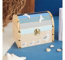 A pretty chest made of pine wood which you can individually design or paint with the napkin technique . For this, craft paints, Chalky Color, metallic paints and much more. Ideally suited for maritime treasure chests, jewelry boxes, storage for keys and Co. in the hallway and much more. With accessories such as gemstones, ribbon and glitter, becomes an eye-catcher from the chest.