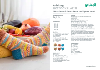 Die 4-fädige Gründl Hot Socks "Lazise" Wolle besteht aus 75 % Schurwolle und 25 % Polyamid und ist mit "superwash" gekennzeichnet, sodass ein Schonwaschgang bei 40 °C möglich ist. Das strapazierfähige und pflegeleichte Garn ist ca. 100 g schwer und hat eine Lauflänge von ca. 420 m. Für bestmögliche Ergebnisse wird eine Nadelstärke von 2,5 – 3 empfohlen.