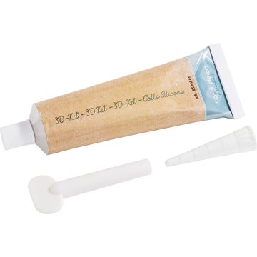 Tragen Sie den Silikonkleber entlang der Drahtschlaufen auf, legen Sie die Mini-Mosaiksteine auf. Dann die Flächen nach innen und bis zum Rand des Schildes hin nach und nach mit weiteren Steinchen bedecken. Jedes Steinchen wird hierbei mit Silikonkleber fixiert. Dieser sollte beim Auftragen immer feucht sein. Daher empfiehlt es sich, immer nur kleine Flächen mit dem Klebstoff zu versehen und nicht gleich das gesamte Schild. Tipp: Achten Sie beim Legen der Steine darauf, dass diese nicht zu eng platziert werden. Es erleichtert hinterher das Verfugen, wenn die Abstände (Fugen) mindestens 1 mm breit sind.