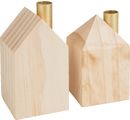 Entdecke die Magie der Details mit unseren Holz-Häusern mit Halterung für Stabkerze. Diese charmanten Kerzenhalter sind nicht nur funktional, sondern auch ein Blickfang in deinem Zuhause. Das Set besteht aus zwei unterschiedlich großen Holzhäusern, die mit ihrer natürlichen Ausstrahlung und den goldfarbigen Metalltüllen für Baumkerzen eine warme Atmosphäre schaffen.