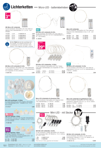Mit dem Timer l%u00e4sst sich die Leuchtdauer f%u00fcr 6 Std. einstellen. Die L%u00e4mpchen brennen 6 Std. und deaktivieren sich dann automatisch. Nach weiteren%u00a018 Std. beginnen sie wieder zu leuchten.VBS Micro-LED-LichterketteF%u00fcr den Innenbereich. Warmwei%u00dfes Licht. Timer. Kabel aus silbernem Draht. Batteriebetrieben (3 x 1,5 V AA %u2013 nicht enthalten).10 LEDs1,3 m41689 281 013,4920 LEDs2,2 m41689 298 013,9930 LEDs3,2 m41689 304 015,4940 LEDs4,2 m41689 311 016,49NEUVBS Micro-LED-Lichterkette 30 LEDsF%u00fcr den Innenbreich. Warmwei%u00dfes Licht. Timer. Kabel aus silberfarbenem Draht von L ca. 2,6 m. Batteriebetrieben (2 x AA - nicht enthalten)41268 893,69Micro-LED-LichterketteF%u00fcr den Innenbereich. Warmwei%u00dfes Licht. Timer. Kabel aus biegsamen Draht. Batteriebetrieben (2 bzw. 3 x AA - nicht enthalten).20 LEDs1 mGold41236 843,7540 LEDs2 mGold41236 904,7940 LEDs101 cmSilber41265 334,79VBS Micro-LED-Lichterkette 20 LEDsF%u00fcr den Innenbereich. Warmwei%u00dfes Licht. Timer. Kabelr%u00fcckf%u00fchrung, Kabelfarbe: Transparent, L ca. 210 cm. Batteriebetrieben mit 2 Knopfzellen CR 2032 (enthalten).41689 7934,49VBS Micro-LED-Lichterketten, 10 St%u00fcckF%u00fcr den Innenbereich. Warmwei%u00dfes Licht. Timer. Transparentes Kabel. Batteriebetrieben mit 2 Knopfzellen CR 2032 (enthalten).10 LEDs1,05 m41173 7229,9920 LEDs2,1 m41173 7335,99NEUVBS Micro-LED-Lichterkette 10 LEDsF%u00fcr den Innenbreich. Warmwei%u00dfes Licht. Timer. Kabel aus goldenfarbenem Draht von L ca. 67 cm. Batteriebetrieben (2 x CR2032 - enthalten)41268 883,99Micro-LED-Lichterkette mit goldfarbenem DrahtF%u00fcr den Innenbereich. Warmwei%u00dfes Licht. Timer. Kabel aus goldfarbenem, biegsamen Draht von L ca. 100 cm. Batteriebetrieben (2 CR2032 - enthalten).20 LEDs1 m41184 844,4930 LEDs1,95 m41236 784,79Micro-LED-Lichterkette mit schwarzem DrahtF%u00fcr den Innenbereich. Warmwei%u00dfes Licht. Biegsamer Draht. Timer. Batteriebetrieben (2 x CR2032 %u2013 enthalten).10 LEDs92 cm41265 283,4920 LEDs100 cm41184 834,4930 LEDs190 cm41265 294,59Mini-LED Leuchtkugeln, 10 St%u00fcckZur inneren Beleuchtung von Deko-Objekten. Warmwei%u00dfes Licht. Batteriebetrieben (LR41 - enthalten). %u00d8 ca. 1,5 cm. Aus Kunststoff.41276 272,99BESTSELLERVBS LED-Teelichter, 4 St%u00fcckMit Schalter. Flackerlicht. Brenndauer ca. 72 Std. Batteriebetrieben mit einer Knopfzelle (LR44 %u2013 enthalten). %u00d8 ca. 3,5 cm. Aus Kunststoff.ab 1 Stk.41687 9803,49ab 3 Stk.41687 9802,97VBS Mini-LED-Lichterkette, 10 LEDsF%u00fcr den Innenbereich. Schalter. Warmwei%u00dfes Licht. Kreisschaltung. Transparentes Kabel. LED-Abstand ca. 15 cm. Zuleitung ca. 2,95 m. 230 V.1 Stk.41688 314 018,995 Stk.41689 06932,99*Beim Kauf von 5 St%u00fcck, gegen%u00fcber dem EinzelkaufVBS Mini-LED-Lichterkette, 20 LEDsF%u00fcr den Innenbereich. Warmaei%u00dfes Licht. Mit Schalter. Kreisschlatung. Zuleitung ca. 3,10 m, LED-Abstand ca. 26 cm, Gesamtl%u00e4nge ca. 7,75 m, 230 V.41688 321 0112,99Ab34910 St%u00fcckab299918 |Alle Preise in %u20ac inkl. gesetzl. MwSt.Deutschland: 04231 668 11 (Mo.-Fr. 9-17 Uhr)%u00d6sterreich: 01 662 20 20 (Mo.-Fr. 9-17 Uhr)**service@vbs-hobby.comservice@vbs-hobby.at**Es entstehen Ihnen normale Verbindungskosten nach Wien.ymit TimerVBS LED-Teelichter, 4 St%u00fcckMit Flackerlicht. Timer auf 4 Std. eingestellt. Batteriebetrieben mit einer Knopfzelle (CR2032 %u2013 enthalten). Ca. %u00d8 3,7 x H 3,7 cm. Aus Kunststoff.41689 3667,49 Lichterketten Mini-LED - mit Stecker Micro-LED - batteriebetrieben 26 %*sparen