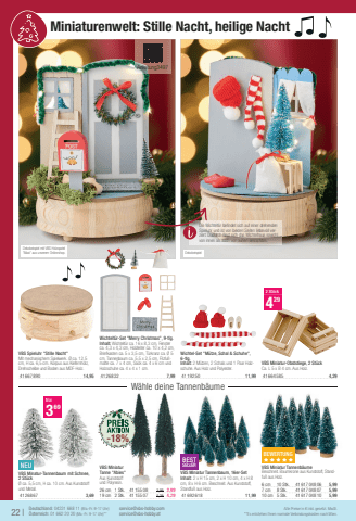 Dekobeispiel mit VBS Holzspatel \ aus unserem Onlineshop.22 |Alle Preise in %u20ac inkl. gesetzl. MwSt.Deutschland: 04231 668 11 (Mo.-Fr. 9-17 Uhr)%u00d6sterreich: 01 662 20 20 (Mo.-Fr. 9-17 Uhr)**service@vbs-hobby.comservice@vbs-hobby.at**Es entstehen Ihnen normale Verbindungskosten nach Wien.Dekobeispiel Miniaturenwelt: Stille Nacht, heilige Nacht NEUVBS Minatur-Tannenbaum mit Schnee, 2 St%u00fcck%u00d8 ca. 5,5 cm, H ca. 10 cm. Aus Kunststoff und Metall.41268 673,69Nur369VBS Miniatur Tanne \Aus Kunststoff und Polyresin.26 cm1 Stk.41155 083,992,9919 cm2 Stk.41155 075,294,29VBS Spieluhr \Mit mechanischem Spielwerk. %u00d8 ca. 12,5 cm, H ca. 6,5 cm. Korpus aus Kiefernholz, Drehscheibe und Boden aus MDF-Holz.41667 89014,95Wichtelt%u00fcr-Set \Inhalt: Wichtelt%u00fcr ca. 16 x 8,3 cm, Fenster ca. 4,3 x 4,3 cm, Holzleiter ca. 10 x 4,2 cm, Briefkasten ca. 5 x 3,5 cm, T%u00fcrkranz ca. %u00d8 5 cm, Tannenbaum ca. 5,5 x 2,5 cm, Filzfu%u00dfmatte ca. 7 x 4 cm, Sack ca. 4 x 6 cm und Holzschuhe ca. 4 x 4 x 1 cm.41268 327,99Wichtel-Set \6-tlg.Inhalt: 2 M%u00fctzen, 2 Schals und 1 Paar Holzschuhe. Aus Holz und Polyester.41192 5011,99VBS Miniatur-Obststiege, 2 St%u00fcckCa. L 5 x B 4 cm. Aus Holz.41664 5854,292 St%u00fcck429BEWERTUNGxxxxxVBS Miniatur Tannenb%u00e4umeBeschneit. Baumkrone aus Kunststoff, Standfu%u00df aus Holz.6 cm10 Stk.41617 048 065,997 cm8 Stk.41617 048 075,9910 cm5 Stk.41617 048 105,99BESTSELLERVBS Miniatur Tannenbaum, 16er-SetInhalt: 2 x H 15 cm, 2 x H 10 cm, 4 x H 8 cm, 8 x H 6 cm. Beschneit. Aus Kunststoff, Standfu%u00df aus Holz.41692 61811,99 W%u00e4hle deine Tannenb%u00e4ume -18%Anleitung3497Die Wichtelt%u00fcr befi ndet sich auf einer drehenden Spieluhr und ist von beiden Seiten liebevoll verziert. Dadurch l%u00e4sst sich das Wichtelhaus sowohl von innen als auch von au%u00dfen betrachten.