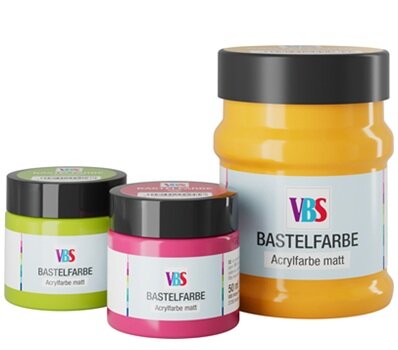 Bastelprojekte mit Farbe eignet sich die Bastelfarbe von VBS ausgezeichnet. Mit der VBS Hobby Color hat VBS eine Bastelfarbe entwickelt, die neben seiner ausgezeichneten Qualität und Deckkraft eine besonders große Farbvielfalt bietet. Die umweltfreundliche Acryl-Bastelfarbe lässt sich gut verstreichen, ist wasserverdünnbar, speichelecht, gut deckend und trocknet dabei seidenglänzend auf.
