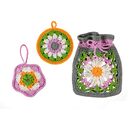 • Untertitel: Anleitungsbuch, Anleitungskarten, Spannbrett, Maschenmarkierer, Scherenring, Häkelnadel, Baumwollgarn