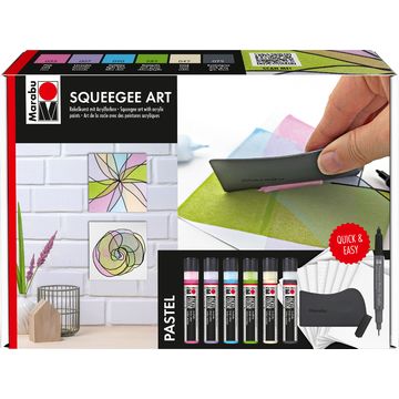 Entdecke die faszinierende Welt der Rakelkunst mit dem Marabu Acryl Color Squeegee Art Set! Dieses Set ist deine Eintrittskarte in die kreative Technik des Rakelns, bei der du Acrylfarbe auf Pappe, Leinwand oder Papier aufträgst und mit einem Rakel zu beeindruckenden Kunstwerken verwandelst. Die cremige Acrylfarbe auf Wasserbasis ist schnelltrocknend, lichtecht und wasserfest – perfekt für deine Kreationen.