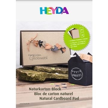 Schöner Block Naturkarton mit 20 Blatt in 5 Farben - je 2 Blatt pro Grammatur und Farbe. Die Grammatur beträgt 90 g/m² und 220 g/m². Erhältlich in DIN A4 und DIN A3.
