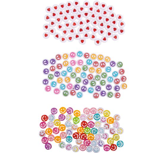 Entfessele deine Kreativität mit dem farbenfrohen Perlen-Mix "Happy"! Diese vielseitigen Kunststoffperlen mit einem Durchmesser von 6 mm und einem Inhalt von 25 g laden dich ein, einzigartige Armbänder, Ketten und Anhänger zu kreieren. Kombiniere Herzen, Peace-Zeichen und Emoticons zu einem individuellen Schmuckstück, das deine Persönlichkeit widerspiegelt.