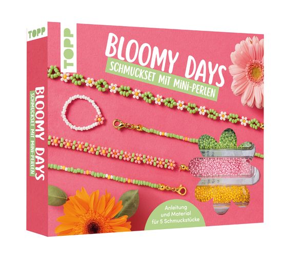 Lust auf Frühling? Mit dem Schmuckset mit Mini-Perlen "Bloomy Days" bringst du den Frühling an dein Handgelenk! Mit diesem bezaubernden Schmuckset kreierst du mühelos fünf einzigartige Schmuckstücke aus Mini-Perlen. Lass dich von der Natur inspirieren und gestalte drei Armbänder, einen Ring und einen Choker, die die Anmut frischer Blumenwiesen widerspiegeln.