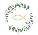 Die Serviette "Kommunionszweig" ist passend für die Anlässe Kommunion, Firmung, Taufe und Konfirmation. Das edle viertel Motiv mit weißem Hintergrund zeigt einen goldenen Fisch in der Mitte, der mit einem zarten Kranz aus Eukalyptus umgeben ist. Passend als Tischdekoration für diesen besonderen Tag oder auch für kreative Geschenke.