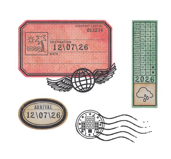 Sizzix Framelits Stanzschablone und Clear Stamps "Globetrotter’s Mark by 49 & Ma