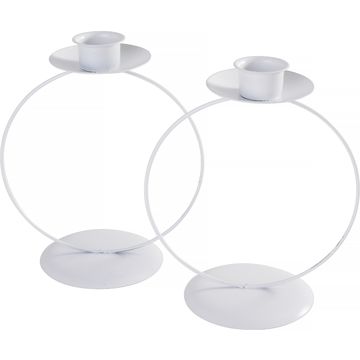 Die VBS Kerzenhalter "Moora" zum Stellen eignen sich für Stabkerzen mit einem Ø von ca. 2,4 cm. Die Tülle hat eine Höhe von ca. 1,7 cm und der Tropfenfänger hat einen Ø von ca. 5,7 cm. Insgesamt haben die Kerzenhalter eine Höhe von ca. 14,5 cm und einen Ø von ca. 12 cm. Der Standfuß besitzt einen Ø von ca. 7,5 cm. Es sind 2 Stück enthalten.