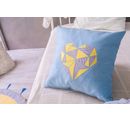 4. Danach mit der beschichteten Seite nach unten auf die gewählte Stelle eines anderen Stoffes auflegen. Mit feuchtem Tuch abdecken und schrittweise 10 Sek. bügeln.