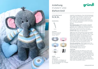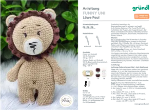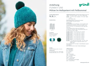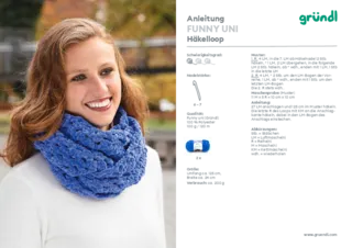 Die Wolle “Funny Uni“ wird als 100 g Knäuel geliefert und hat eine Lauflänge von ca. 120 m. Für das Stricken und Häkeln wird eine Nadel in Stärke 5 – 6 mm verwendet.