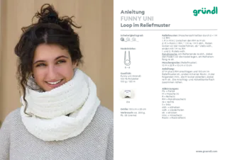 Für das Anfertigen eines Pullovers in Größe 38 benötigt man 500 g Funny Uni.